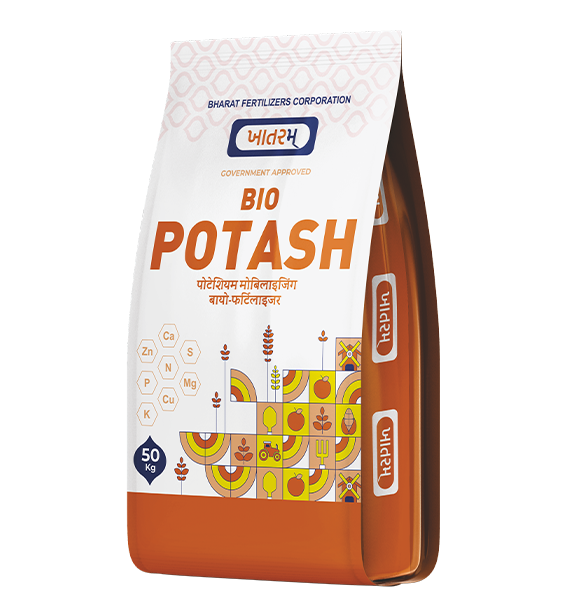 બાયો પોટાશ એ પોટેશિયમ આધારિત બાયો-ફર્ટિલાઈઝર છે, જે પાકના ગુણવત્તાવાળું વિકાસ માટે ખાસ તૈયાર કરવામાં આવ્યું છે. આ ખાતર જમીનના પોષણ સ્તર વધારવામાં મદદરૂપ બને છે અને છોડના સેલ ડિવિઝન, પાણીના સંચય અને ફળોના કદ અને ગુણવત્તા માટે અત્યંત અસરકારક છે.